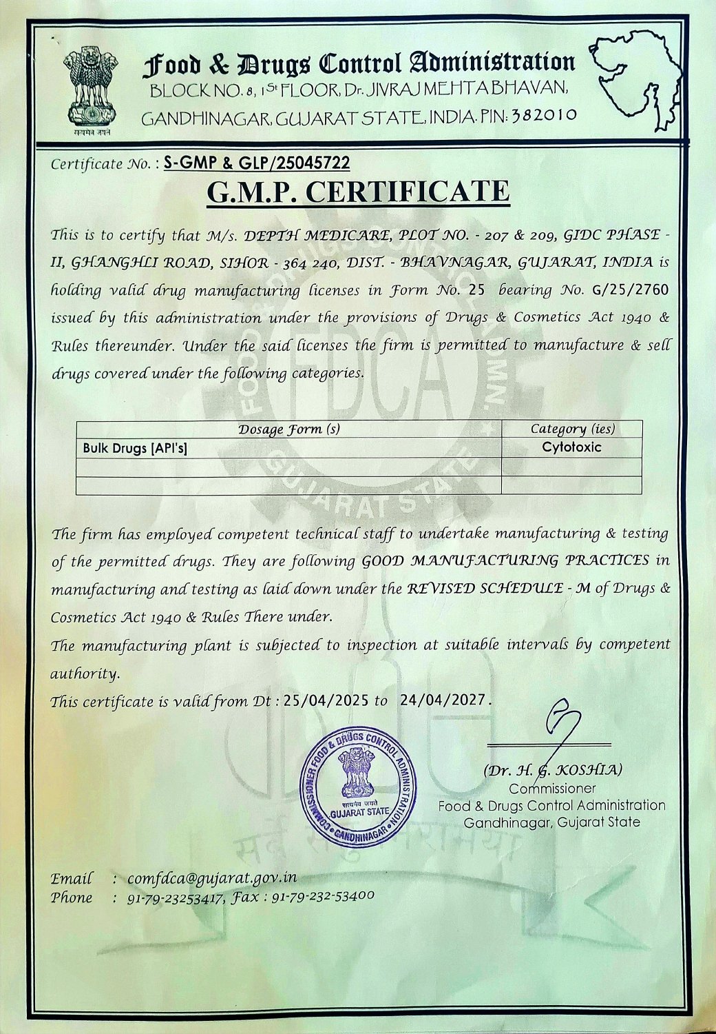 Plot no.207&209, GIDC-ll, Ghanghli Road, Sihor-364240 Bhavnagar ,Gujarat